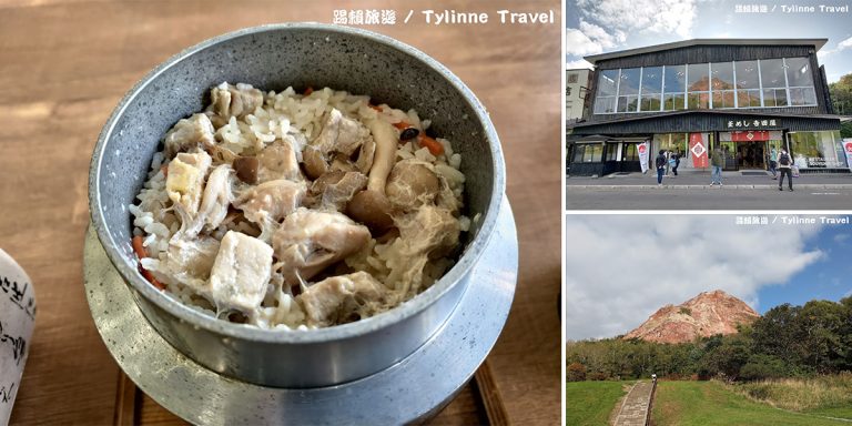 整體來說這裡的環境非常漂亮,如果是自由行建議可以多安排一點時間,拍完昭和新山可以再搭纜車欣賞有珠山,因為有珠山也是北海道有名的一座山。至於餐點的部分能選的種類非常多,因為我們是旅行社安排的餐點小菜是固定的,如果可以自行點也可以點高級一點的釜飯套餐,小菜就會多一樣雞腿這也是吉田屋的招牌小菜之一,不過其實光扇貝就非常讓人印象深刻,因為夠新鮮才能讓我們自己烤來吃,搭配香濃的雞肉釜飯,可以邊吃邊欣賞昭和新山,讓這頓午餐吃起來格外愜意。